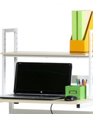 薄型パソコンラック(品番:22-4/22-5)用の机上ラック。机の上を有効にお使いいただけます。棚板の高さを6段階に変更できます。もちろん、薄型パソコンラック以外のデスクにも取り付け可能です。
