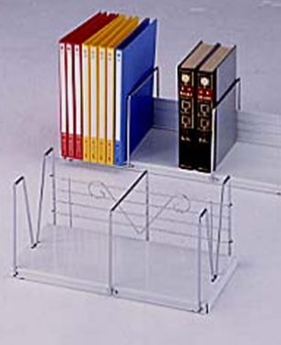 デスクトップにやロッカーの上に置ける、スチール製本立て。仕切り部の金具が可動しますので、本が倒れないように調整が簡単に行えます。